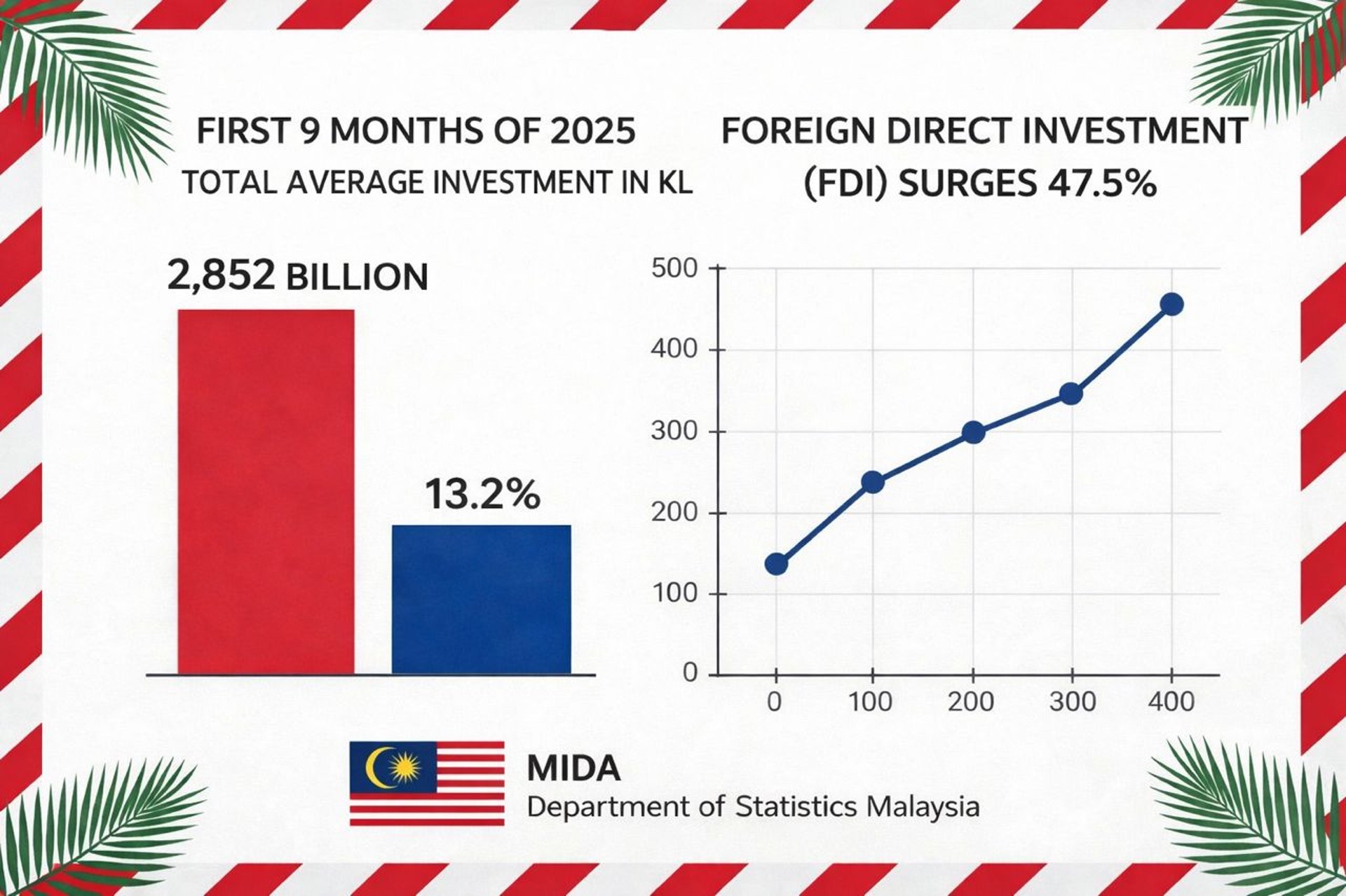 In the first nine months of 2025, Malaysia’s approved investments reached RM285.2 billion, representing a 13.2% year-on-year increase, showing strong resilience despite global economic headwinds (MIDA).