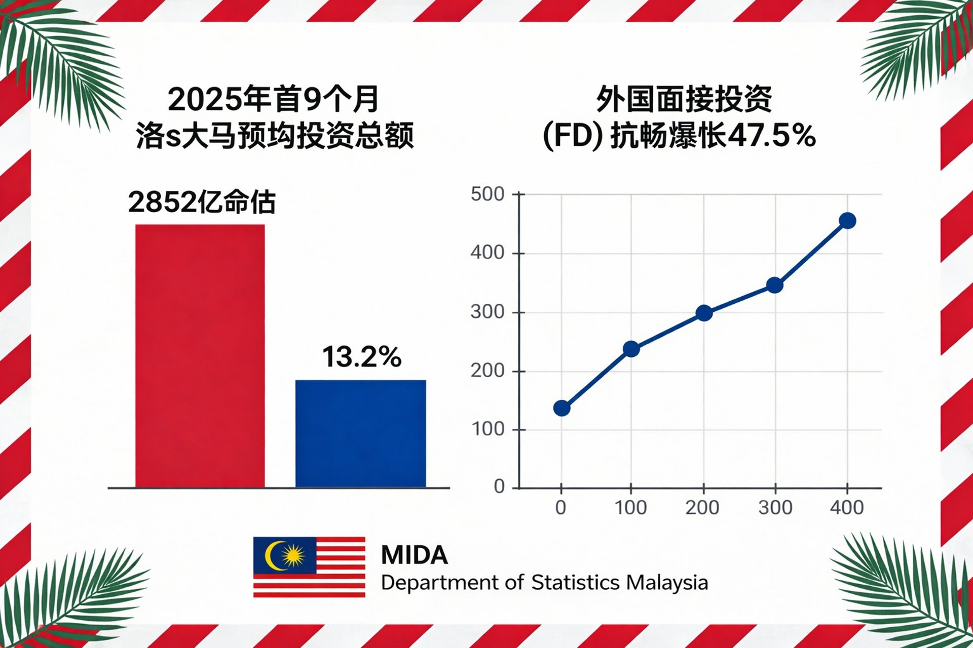 2025 年首 9 个月,大马获批投资总额已经冲到 2852 亿令吉,同比增长 13.2%,完全无惧全球经济波动嘅逆风MIDA。其中外国直接投资(FDI)表现更劲,同比暴涨 47.5%,服务业、制造业、初级产业全线上扬,单是服务业就吸引 1879 亿令吉投资,占比超 6 成MIDA。更值得骄傲嘅係,我国国际投资地位大升级,已经从净负债转为净资产,外资对大马嘅信心简直系满格状态Department of Statistics Malaysia!